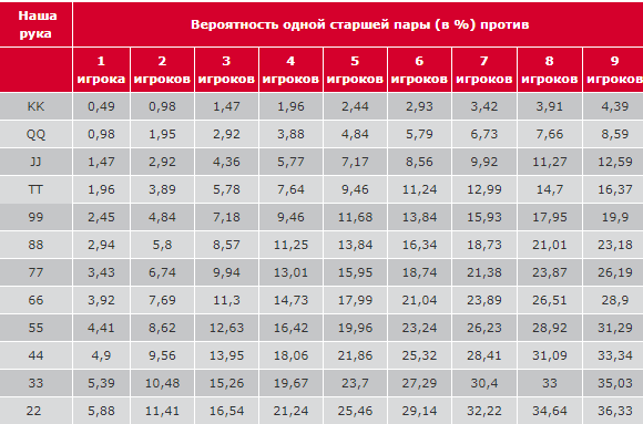 - Выбирая ответы на вопросы, связанные с вероятностями и шансами, игроку следует учитывать, какой этап раздачи подлежит анализу: есть ли данные только относительно стартовых рук, или же речь ведется о Постфлопе. Таблица вероятностей окажется полезной: